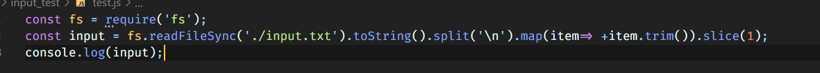 이후 문제를 백준에 제출할 땐, readFileSync 안의 txt파일 주소 대신 백준의 입력 주소인 '/dev/stdin'을 넣어주면 된다.