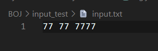 문자열(7 77 7777)을 split 메서드를 통해 공백 기준으로 쪼개고, input 배열로 반환했다.