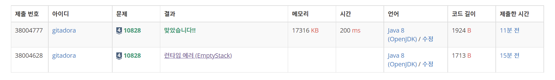 - empty: 스택이 비어있으면 1, 아니면 0을 출력한다.